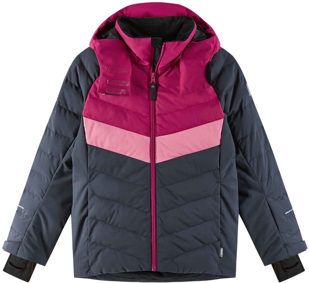 Bunda má dve vrecká na zips, vrecko na skipas a od veľkosti 116 aj vnútorné náprsné vrecko na zips. Šírku rukávov je možné nastaviť pomocou suchých zipsov. Rukávy majú elastické vnútorné manžety s otvormi pre palec. Zadný diel je predĺžený a spodný lem nastaviteľný. Bunda má aj pás proti vniknutiu snehu a môžu sa k nej pripnúť lyžiarske nohavice Reima.